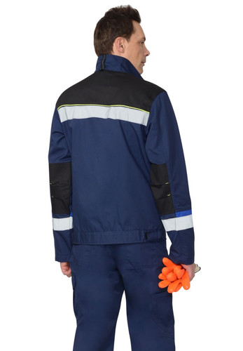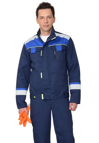 Куртка прямого силуэта, короткая, с воротником стойка, с центральной застёжкой на тесьму-"молнию" накрытую ветрозащитным клапаном на липучках, с нижними прорезными карманами с листочкой, с притачным поясом регулирующимся по ширине при помощи хлястиков и липучки.