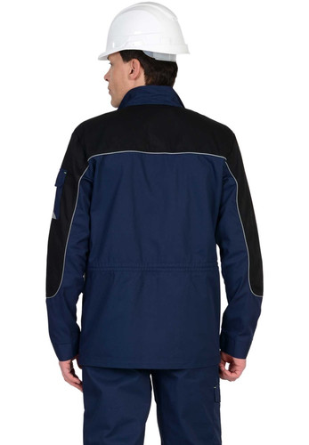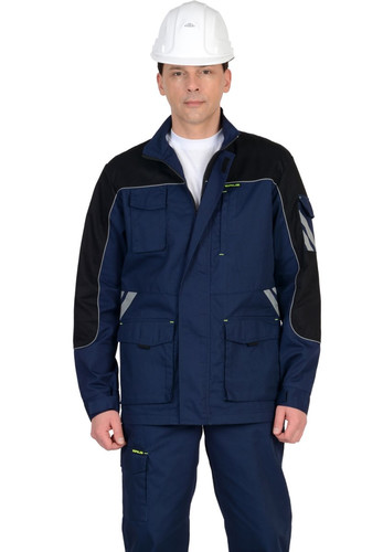 Куртка прямого силуэта, с центральной застежкой на молнию, накрытую ветрозащитным клапаном, с воротником стойка, с различными многофункциональными карманами, с элементами из СВ канта и СОП, обеспечивающие безопасность работы в условиях пониженной видимости. Ткань смесовая с МВО пропиткой.
