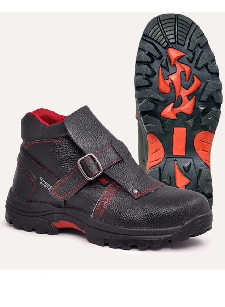 Ботинки изготовлены из натуральной кожи, глухой клапан и дополнительный кожаный язычок предохраняет от попадания искр и окалин. Мягкий кант защищает от боковых ударов и обеспечивает комфорт. Трикотажный подклад.