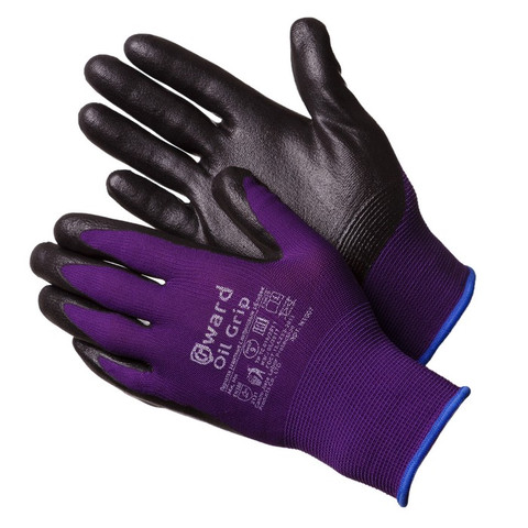 Нейлоновые перчатки фиолетового цвета, покрытые вспененным (микропористым) нитрилом черного цвета. Бесшовная основа 13го класса вязки прекрасно вентилируется и не оставляет ворсинок. Универсальны, применяются для любых механических работ. Двойной оверлок с латексным кольцом обеспечивает превосходную фиксацию перчатки на запястье.