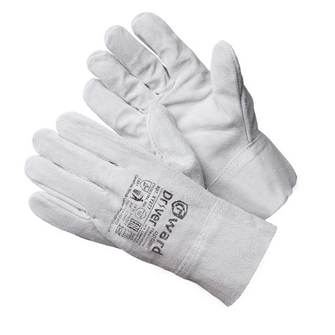 Цельноспилковые перчатки. Перчатки сшиты из высококачественного спилка КРС серого цвета. Данная конструкция перчаток расширяет возможности использования данных перчаток для работ в области сварки металла. Манжет удлиняет перчатку до общей длинны от кончика среднего пальца до конца манжета до 27 см. Данная конструкция перчатки способствует эффективной защите запястья и вены от нежелательных царапин, порезов, ударов и т.д. Толщина спилка для данной модели перчаток 1,3 мм. В наших перчатках используется только спилок высшего сорта. Мягкий, плотный, качественный, равномерно прокрашенный. Без подклада.