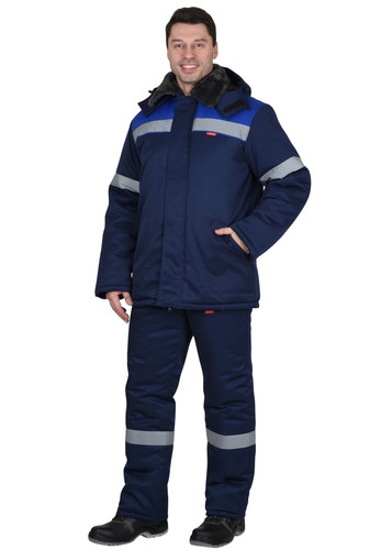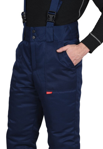 Брюки прямые, с притачной утеплённой подкладкой, с центральной застежкой гульфика на тесьму - «молния», широким фигурным поясом, с застежкой на поясе две обметанные петли и пуговицы, с тремя узкими шлевками на задних половинках и двумя шлевками-держателями фастексов на передних половинках, с боковыми накладными карманами с наклонным входом, с бретелями.