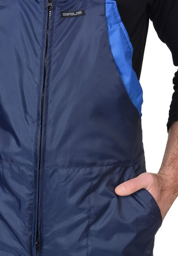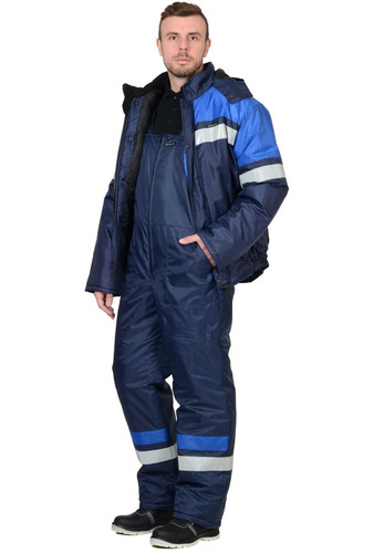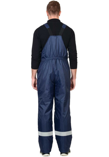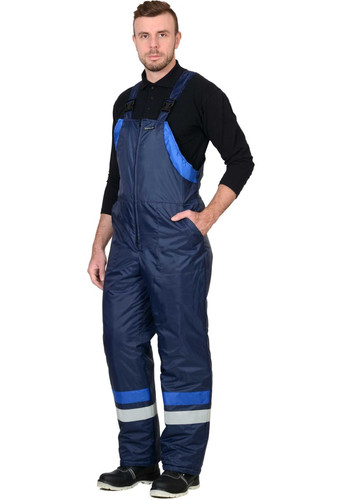Полукомбинезон с регулируемыми за счет эластичной тесьмы и фастексов бретелями; с центральной застежкой на молнию; с притачными нагрудником и спинкой; с эластичной тесьмой по талии спинки; с накладными боковыми карманами с наклонным входом на передних половинках; на нагруднике выполнены карманы в рельефе.