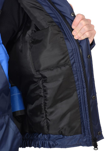 Куртка короткая; с центральной застежкой на молнию накрытую внешним ветрозащитным клапаном, с карманами листочка, воротником – стойка, пристегивающимся капюшоном, притачным поясом, частично стянутым резинкой, с внутренним карманом на подкладке. Рукава с внутренними трикотажными манжетами.