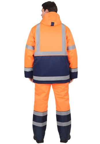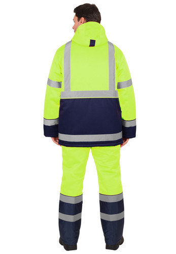 Куртка прямого силуэта; с притачной утеплённой стеганой подкладкой, с центральной застёжкой на двухзамковую тесьму - «молнию» и ветрозащитной планкой застегивающейся на потайные текстильные застежки «липучка». По полочкам, спинки в области груди, талии, низа и низа рукавов настрачивается СОП 50 мм для обозначения сигнальной видимости.