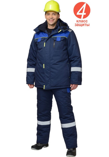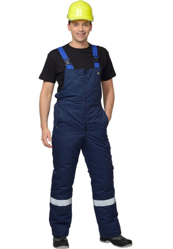 Полукомбинезон прямого покроя, с притачной утепленной подкладкой, с ветрозащитной прокладкой из ткани «Лаке», с центральной застежкой на тракторную тесьму «молния», внутренними боковыми карманами, наколенниками, накладным карманом на левом боковом шве с клапаном на липучке, с патой, по спинке вставлена резинка.На куртке и полукомбинезоне настрочены светоотражающие полосы 5мм для обеспечения безопасности работы в условиях пониженной видимости.