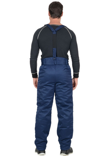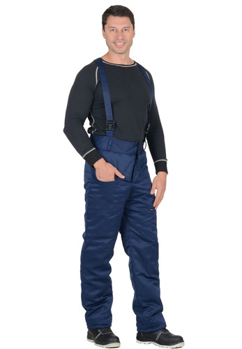 Брюки с широким поясом, с фигурной линией верхнего края с застежкой на пуговицы, узкими шлевками, регулируемыми съемными бретелями, боковыми накладными карманми.