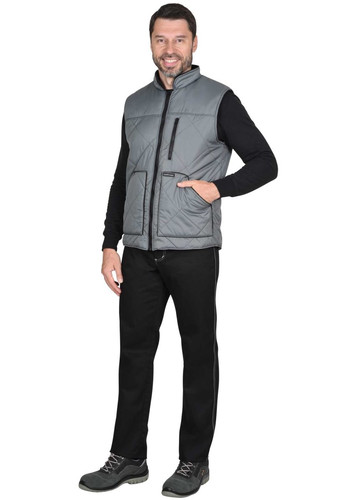 Жилет утепленный «Европа» с удлиненной спинкой, графит (флис черный)