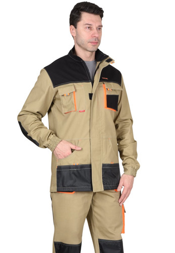 Куртка прямого силуэта; с центральной застежкой на «молнию»; с воротником стойка, с ветрозащитной планкой, с притачными манжетами, с накладными объемными верхними карманами с клапанами, с нижними объемными карманами. Ткань с МВО пропиткой.