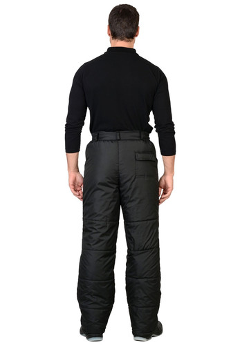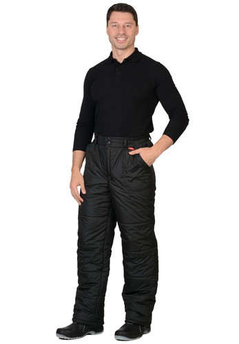 Брюки прямые, утеплённые, с центральной застежкой на тесьму "молния", притачным поясом с эластичной лентой по бокам, с застежкой на две обметанные петли и пуговицы, с пятью шлёвками: две на передней, три на задней части пояса; с боковыми карманами, задним карманом с клапаном на липучке.