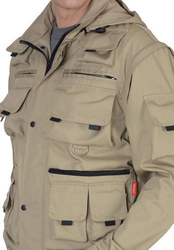 Куртка короткая, прямого силуэта с центральной застёжкой на молнию накрытой ветрозащитным клапаном, застёгивающимся на четыре кнопки, воротник стойка, пристёгивающимся капюшоном, различными многофункциональными карманами на "молнии", с клапанами на "липучках". Рукава пристёгиваются на "молнию", манжеты рукавов с патой регулирующие ширину при помощи "липучки". Низ куртки с притачным поясом стянутым, частично, резинкой.