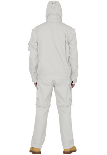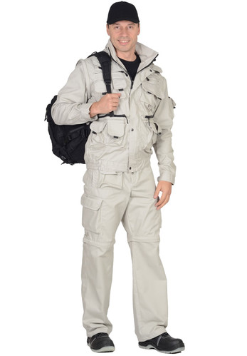Брюки прямые с притачным поясом с 5-ю шлёвками, частично стянутый резинкой, застёгивающийся на пуговицу, застёжка гульфика на тесьму - "молния", с различными многофункциональными карманами. Низ брюк отстёгивается для трансформации брюк в шорты.