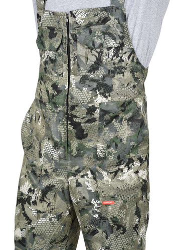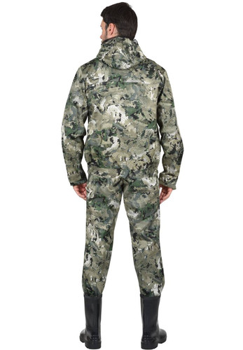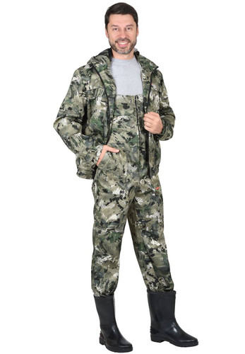 Полукомбинезон прямого кроя с центральной застёжкой на тесьму - «молния», с притачной грудкой, с верхними накладными карманами с клапанами и боковыми накладными карманами, с бретелями, по линии талии спинка стянута на эластичную тесьму для прилегания изделия по фигуре.
