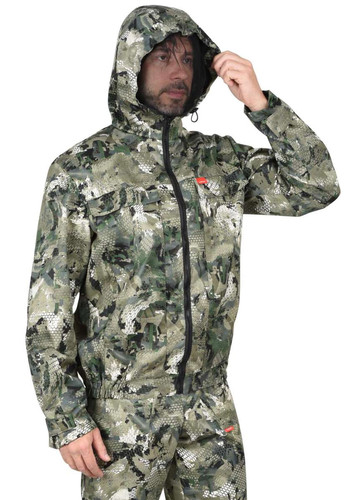 Куртка короткая прямого силуэта с втачным капюшоном с москитной сеткой, с притачным поясом по низу, с центральной бортовой застежкой на тесьму «молния», с нагрудными карманами и с вертикальными боковыми карманами в шве.