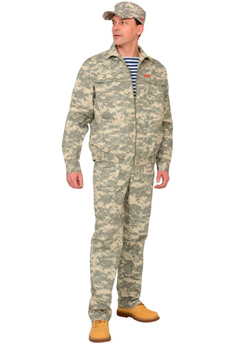 Куртка короткая, с отложным воротником, с центральной бортовой застежкой на тракторную молнию ; с притачным поясом частично стянутым резинкой; с нагрудными карманами и клапанами на липучках, с боковыми карманами в вертикальных швах. Рукава, с манжетами на пуговицах.