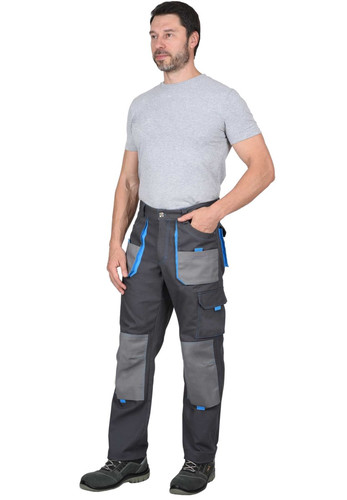 Брюки прямые, с застежкой гульфика на молнию, изготовлены из ткани "Панакота Комфорт". Изделие с притачным поясом, частично стянутым резинкой по бокам и различными многофункциональными карманами.
