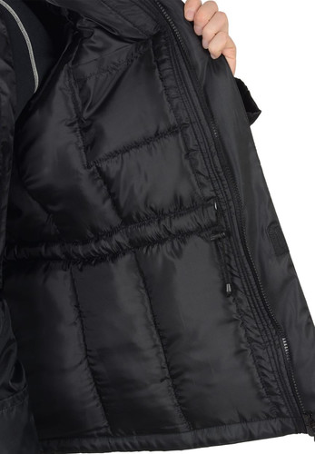 Застежка на двухзамковую молнию, ветрозащитный клапан на липучках. Воротник-стойка с флисом. Внутренняя кулиса по талии. СОП 50 мм.