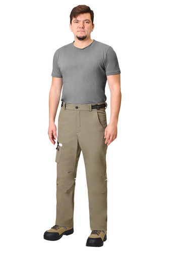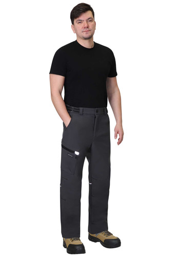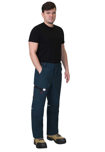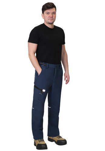 Брюки прямого кроя с застежкой гульфика на молнию, с отрезным поясом, с внутренними боковыми карманами и накладным карманом на правом боковом шве. В брюках предусмотрены светоотражающие элементы на накладном кармане и кант на задних половинках для обозначения сигнальной видимости в тёмное время суток.