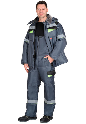 Полукомбинезон прямого покроя, с притачной утепленной подкладкой, с притачным нагрудником, с центральной застежкой на молния, с накладными карманами на нагруднике, с регулируемыми за счет фастексов бретелями, с внутренними боковыми карманами, с наколенниками, накладным карманом на левом боковом шве с клапаном на кнопке, с различными задними карманами. В полукомбинезоне предусмотрен СОП шириной 50мм для обеспечения сигнальной видимости в условиях пониженной видимости.