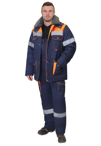 Костюм зимний состоит из удлинённой куртки и полукомбинезона. В костюме предусмотрена светоотражающая лента для обеспечения видимости работающего в тёмное время суток.