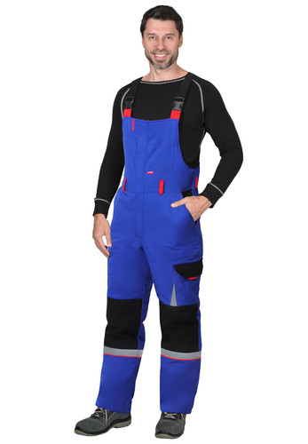 Полукомбинезон на утеплённой подкладке, с бретелями, с центральной застёжкой на молнию, которая закрыта ветрозащитной планкой, с наколенниками, спереди полукомбинезон с нагрудными и боковыми карманами, сзади с верхними карманами и карманами для инструментов, с резинкой в области талии. Бретели с помочной резинкой, регулируются пряжками - фастексами. Для обозначения сигнальной видимости в полукомбинезоне предусмотрена светоотражающая лента.