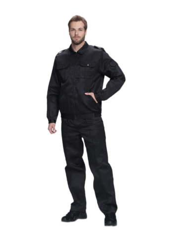 Куртка укороченная с притачным поясом, центральная бортовая застежка на тесьму «молнию», отложной воротник, с погонами, застегивающимися на кнопки. Накладные нагрудные карманы с фигурными клапанами, боковые прорезные карманы с листочкой. Пояс по боковым швам стянут эластичной тесьмой. Рукава с манжетами, застегивающимися на кнопки. По низу рукава заложены две складки. На левом рукаве накладной кармана с фигурным клапаном.