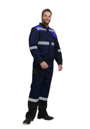 - по кокеткам, полочкам, спинке, рукавам и брючинам расположены световозвращающие полосы, что позволяет использовать костюм в условиях плохой видимости