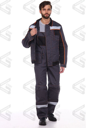 Полукомбинезон с центральной застежкой на молнию, на передних половинках накладные карманы, навесные карманы-портфели, усиления в области коленей с карманом для амортизационных прокладок. Многофункциональный боковой карман.