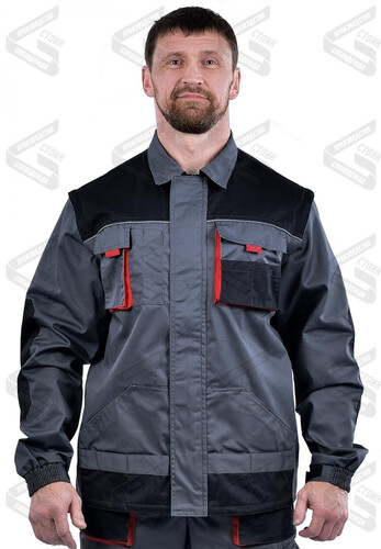 Куртка прямого кроя, центральная бортовая застежка на тесьму «молния» и ветрозащитной планкой, отложной воротник. Два нагрудных накладных кармана, правый карман двойной. По шву притачивания кокетки расположен светоотражающий кант.