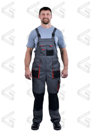 Полукомбинезон рабочий серый с черный и красным
