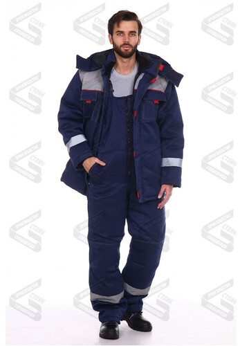 Полукомбинезон утеплённый: отрезной нагрудник, центральная застежка на тракторной молнии. Передние половинки с боковыми карманами в швах, вход наклонный.