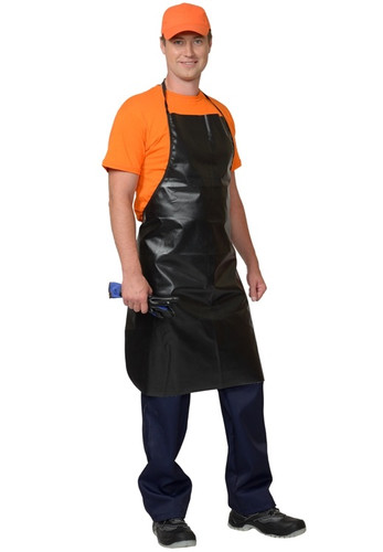 Фартук с цельнокроеным нагрудником, с замкнутой шейной бретелью. К верхним боковым углам притачана тесьма для завязывания.