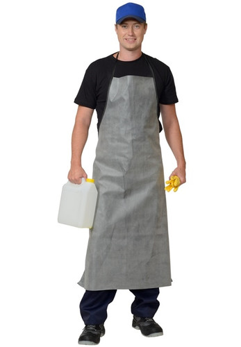 Фартук с цельнокроеным притачным нагрудником, переходящим сзади в кокетку, к нижней части которой притачана эластичная лента. К боковым углам на линии талии притачана тесьма.