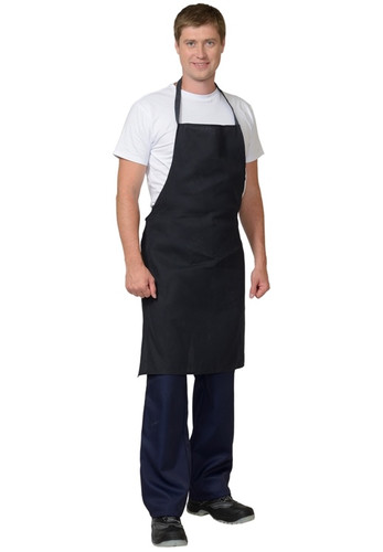 Универсальная модель применяется в самых широких областях промышленности. Фартук с цельнокроеным нагрудником, с замкнутой шейной бретелью. К верхним боковым углам притачана тесьма для завязывания.