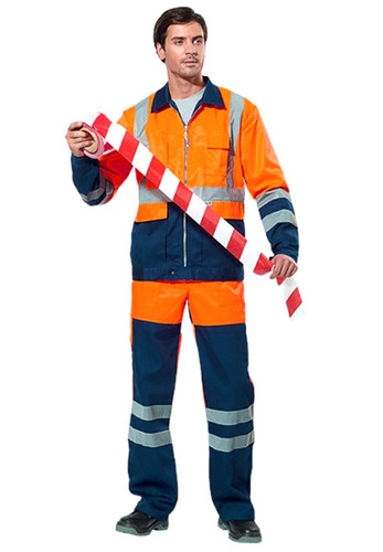 Костюм соответствует 3-му классу сигнальной одежды повышенной видимости. Рекомендуется для использования работниками дорожных служб в условиях плохой видимости. Состоит из куртки и полукомбинезона. Куртка прямого силуэта, с центральной застежкой на молнию, отложным воротником. Оснащен нагрудным карманом на молнии для документов и на левой полочке объемным для средств связи. Нижние накладные карманы с клапанами. Рукава с манжетами на кнопках. По талии полукомбинезона и в бретелях эластичная лента, нагрудный карман на молнии. Усиления на задних половинках брюк. Круговое и вертикальное расположение полос светоотражающих материалов на куртке и по низу полукомбинезона. Контрастное цветовое решение заметно при любой погоде.