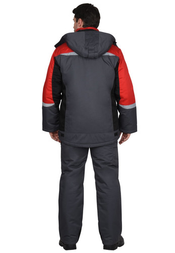 Куртка прямого силуэта, длинная, с притачной утеплённой подкладкой, с прокладкой из ткани "Лаке", с пристёгивающимся утеплённым капюшоном, с воротником стойка, с центральной застёжкой на 2-х замковую тесьму-"молнию", с ветрозащитной планкой на липучке, с подрезными бочками, с верхними фигурными карманами, с нижними прорезными карманами на "молнии". Низ регулируется при помощи хлястиков и липучки. Рукава резные, ширина внизу регулируется при помощи хлястиков и липучки.