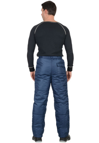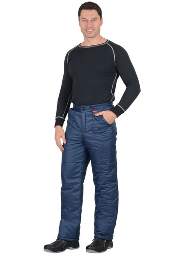 Брюки прямые, утеплённые, с центральной застежкой на тесьму "молния", притачным поясом с эластичной лентой по бокам, с застежкой на две обметанные петли и пуговицы, с пятью шлёвками: две на передней, три на задней части пояса; с боковыми карманами, задним карманом с клапаном на липучке.