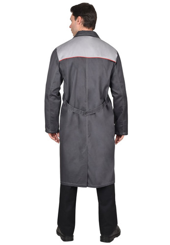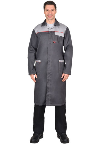 Тк."Орион" 35% х/б, 65% п/э, поверхностная плотность 210 г/кв.м. Кант: красный. Потайная застёжка на пуговицы, нагр, бок. карманы. Спинка с хлястиком и шлицей.