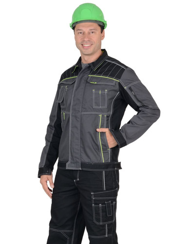 Куртка, укороченная прямого силуэта, с центральной застежкой на тесьму - «молния» накрытую ветрозащитной планкой на 3 потайные кнопки, отложным воротником, верхними прорезными карманами с фигурными клапанами застегивающиеся на потайную липучку, с правым накладным карманом со складкой и клапаном застегивающийся на потайную липучку, и левым накладным карманом, с нижними внутренними карманами. Втачными рукавами и притачными манжетами застегивающиеся на потайную кнопку, на левом рукаве накладной карман с молнией. Куртка с притачным поясом, по спинке пояс регулируется хлястиками застегивающиеся на потайные кнопки. В куртку втачивается кант СВ « ВИЗЛАЙТ», и кант в тон отделочной ткани 2 с наполнителем.