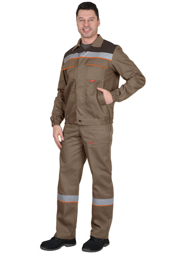 Куртка короткая, с отложным воротником с центральной потайной застежкой на четыре петли и пуговицы, застежкой притачного пояса на одну петлю и пуговицу частично стянутого резинкой; с нагрудными и нижними накладными карманами. Рукава втачные, с притачным манжетам, частично стянутым на эластичную тесьму. В куртке предусмотрена Лента светоотражающая шириной 50мм. для обозначения сигнальной видимости.