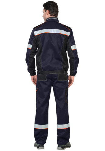 Куртка короткая; с центральной застёжкой на тесьму - «молния»; с ветрозащитной планкой, застегивающейся на сквозные кнопки ; воротник-стойка; с верхними прорезными карманами и фигурными клапанами застегивающиеся на сквозную кнопку и ленту «контакт»; с нижними накладными карманами и фигурными клапанами застегивающиеся на сквозную кнопку. Рукава втачные, разрезные с притачными манжетами, манжеты частично стянуты на резинку ткацкую. Притачным поясом с резинкой ткацкой по бокам. В куртке предусмотрен кант светоотражающий и лента светоотражающая шириной 50мм для обозначения сигнальной видимости.